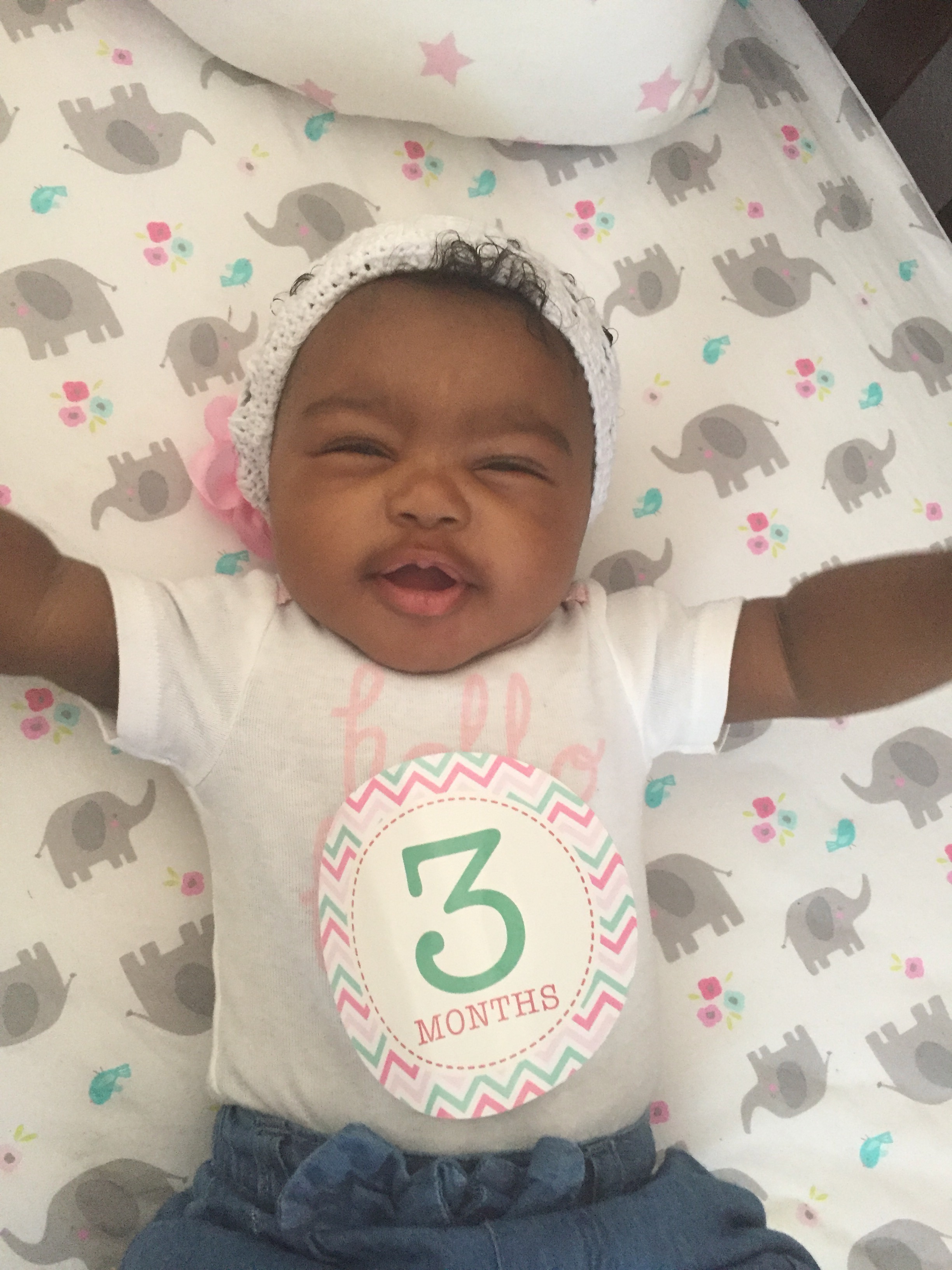 Semira is living her best life! legs kicked out and a smile from the gods! She is truly a happy child.